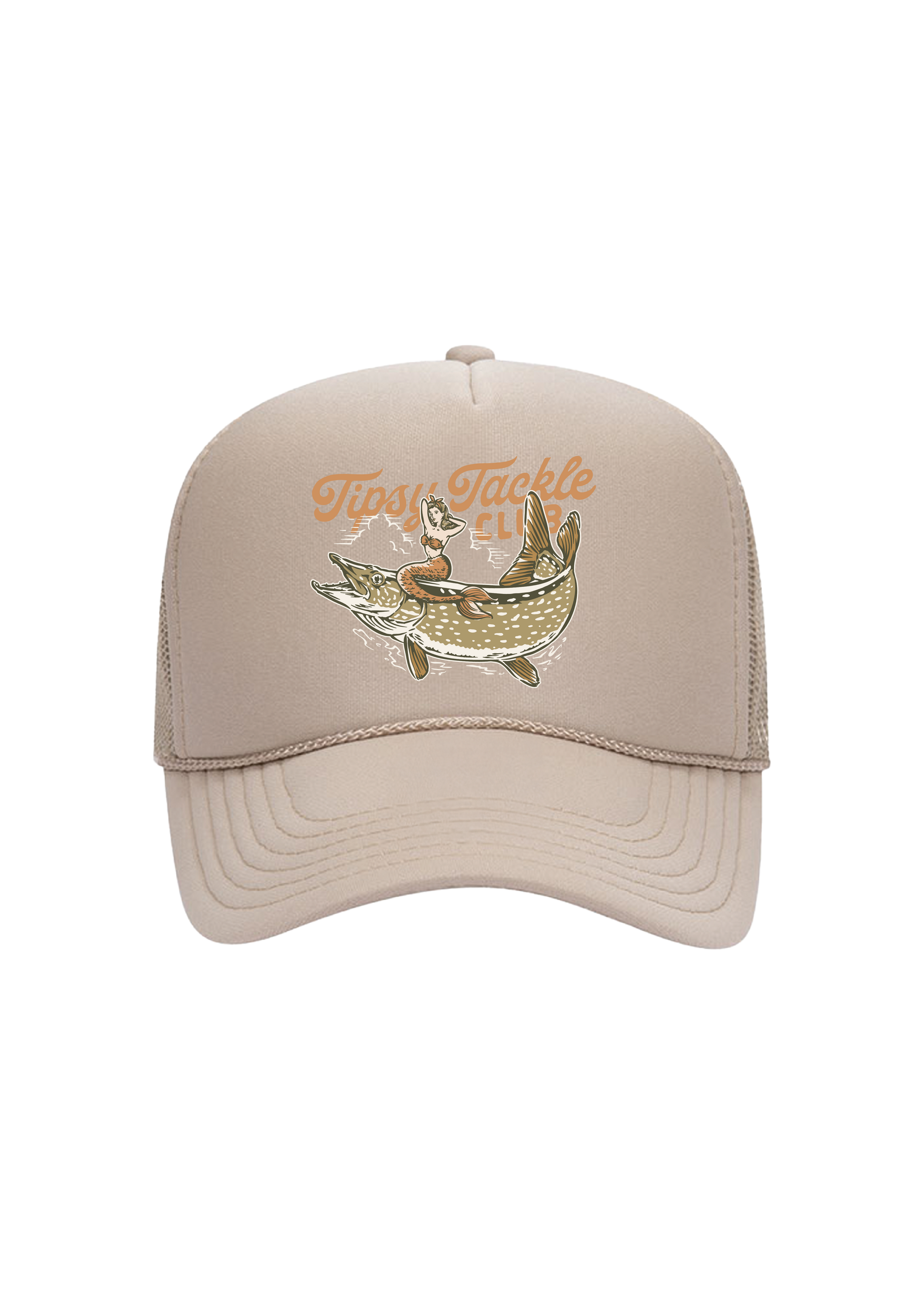 The official gear of questionable casts and even worse karaoke choices at the lake bar. The Tipsy Tackle Club hat is for anyone who's gone fishing and ended up with more beers than bites. Featuring a vintage-inspired graphic of a trophy catch — or maybe just a trophy-sized story — this foam trucker is built for good times on and off the water.